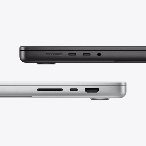 - Порты: 3× Thunderbolt 5 (USB-C) до 120Gb/s (Charging DisplayPort Thunderbolt 5 USB4), HDMI, SDXC, 3.5mm headphone jack, MagSafe 3